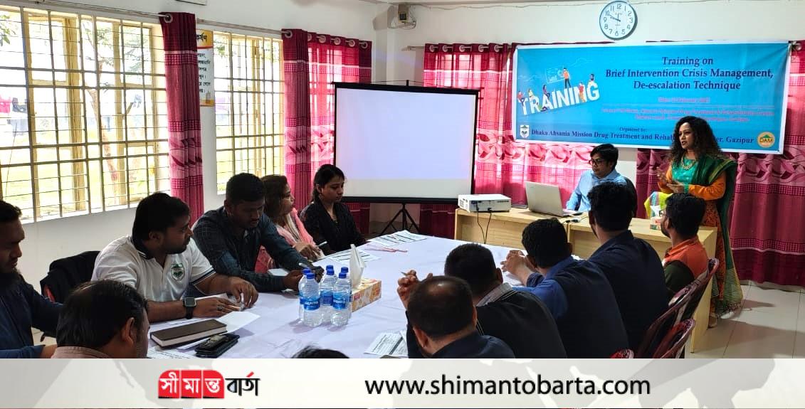 নিজস্ব প্রতিনিধি: আহ্ছানিয়া মিশন মাদকাসক্তি চিকিৎসা ও পুনর্বাসন কেন্দ্র গাজীপুরে ‘ব্রিফ ইন্টারভেনশন, ক্রাইসিস ম্যানেজমেন্ট, ডি-স্কেলেশন টেকনিক এর উপর এক প্রশিক্ষন কর্মশালা অনুষ্ঠিত হয়েছে।