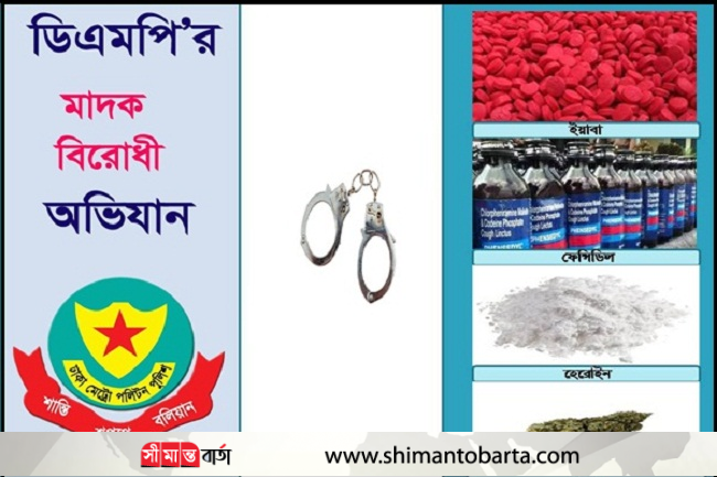 ডিএমপির নিয়মিত মাদকবিরোধী অভিযানের অংশ হিসেবে সোমবার সকাল ছয়টা থেকে আজ সকাল ছয়টা পর্যন্ত রাজধানীর বিভিন্ন থানা এলাকায় অভিযান চালিয়ে মাদকদ্রব্য উদ্ধারসহ তাদেরকে গ্রেফতার করা হয়।