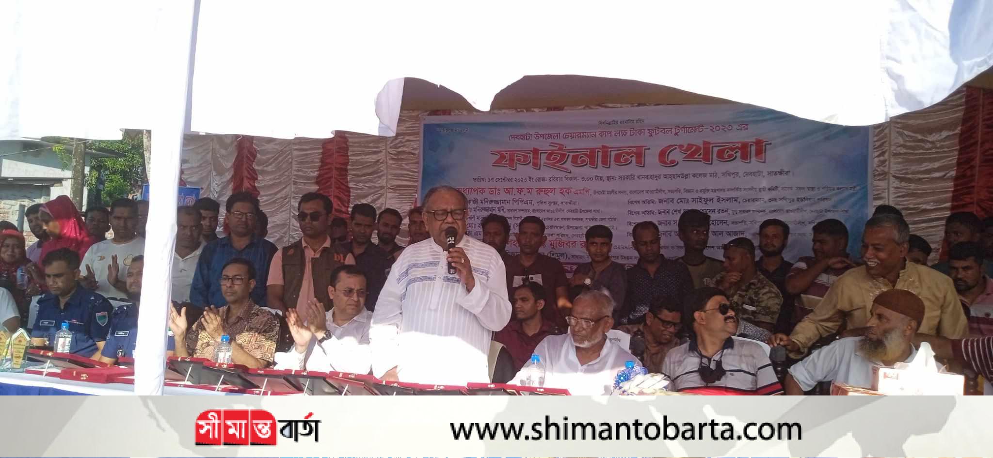 দেবহাটা প্রতিনিধি: "খেলাধুলায় বাড়ে বল, মাদক ছেড়ে খেলতে চল" এই শ্লোগানকে সামনে রেখে দেবহাটা উপজেলার সরকারি খান বাহাদুর আহছানউল্লাহ কলেজ মাঠে লক্ষ টাকার উপজেলা চেয়ারম্যান কাপ ফুটবল টুর্নামেন্টের ফাইনাল খেলা অনুষ্ঠিত হয়েছে। ১৭ সেপ্টেম্বর, ২৩ ইং রবিবার বিকাল ৪ টায় সখিপুর উদয়ন সংঘের আয়োজনে দেবহাটা উপজেলা পরিষদ ফুটবল টুর্নামেন্টের ৪ দলীয় নকআউট ফুটবল খেলার ফাইনাল খেলায় একদিকে অংশগ্রহন করে দেবহাটার ভাতশালা গনগ্ৰন্থাগার ফুটবল একাদশ ও অন্যদিকে অংশগ্রহণ করে দেবহাটার গাজীরহাট প্রগতি সংঘ। দেবহাটা উপজেলা পরিষদ চেয়ারম্যান ও উপজেলা আওয়ামীলীগের সভাপতি আলহাজ্ব মুজিবর রহমানের সভাপতিত্বে ফাইনাল খেলার উদ্বোধনী অনুষ্ঠানে প্রধান অতিথি হিসেবে উপস্থিত ছিলেন সাবেক স্বাস্থ্যমন্ত্রী সাতক্ষীরা -৩ আসনের এমপি ডাঃ রুহুল হক। বিশেষ অতিথি হিসেবে উপস্থিত ছিলেন সাতক্ষীরা জেলা পুলিশ সুপার কাজী মনিরুজ্জামান (পিপিএম), দেবহাটা উপজেলা নির্বাহী অফিসার ইয়ানুর রহমান, দেবহাটা সার্কেলের সহকারী পুলিশ সুপার এসএম জামিল আহমেদ, দেবহাটা থানার ওসি বাবুল আক্তার, ঢাকা আহ্ছানিয়া মিশনের পরিচালক ইকবাল মাসুদ, দেবহাটা উপজেলা পরিষদের ভাইস চেয়ারম্যান ও সাবেক ছাত্রলীগের সভাপতি হাবিবুর রহমান সবুজ, মহিলা ভাইস চেয়ারম্যান জি এম স্পর্শ, সখিপুর ইউনিয়ন আওয়ামীলীগের সভাপতি সরদার আমজাদ হোসেন ও সখিপুর উদয়ন সংঘের সভাপতি আবু আব্দুল্লাহ্ আল আজাদ।