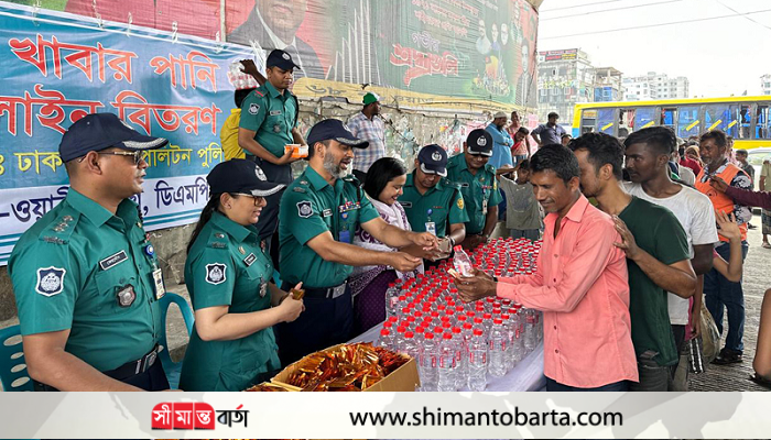 প্রচণ্ড তাপদাহে শ্রমজীবী মানুষের মাঝে খাবার পানি ও স্যালাইন বিতরণ