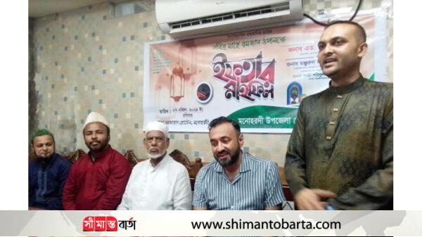 ইফতার ও দোয়া মাহফিল অনুুষ্ঠিত হয়েছে।বাংলাদেশ আওয়ামী যুবলীগের কেন্দ্রীয় কমিটির কার্য নির্বাহী সদস্য,মনোহরদী উপজেলা আওয়ামীলীগের যুগ্ম-সাধারণ সম্পাদক,জনাব মঞ্জুরুল মজিদ মাহমুদ সাদী এর সভাপতিত্বে প্রধান অতিথি হিসেবে উপস্থিত ছিলেন,মনোহরদী উপজেলা আওয়ামীলীগের সংগ্রামী সভাপতি ও আসন্ন মনোহরদী উপজেলা পরিষদ নির্বাচনে চেয়ারম্যান পদপ্রার্থী জনাব এড. মু.ফজলুল হক,প্রধান অতিথির বক্তব্যে তিনি মনোহরদী উপজেলা প্রেসক্লাবের উত্তরোত্তর সফলতা কামনা করেন এবং সকল সাংবাদিকবৃন্দকে বস্তুনিষ্ঠ সংবাদ পরিবেশনের আহবান জানান।