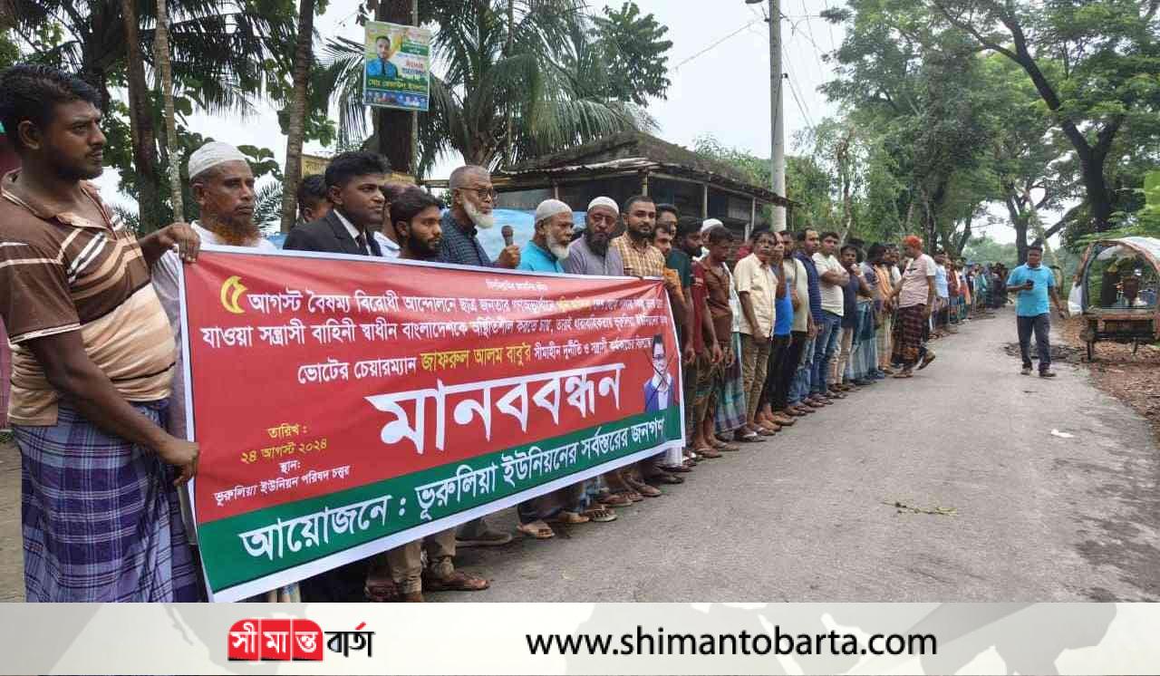 রবিবার (২৫ আগস্ট) বিকাল ৪টায় ভুরুলিয়া ইউনিয়ন পরিষদের সামনে এ মানববন্ধন অনুষ্ঠিত হয়। পরে মানববন্ধন শেষে সেখানে থেকে একটি বিক্ষোভ মিছিল বের করে ইউনিয়নবাসী। বিক্ষোভ মিছিলটি ইউনিয়নের বিভিন্ন সড়ক প্রদক্ষিণ শেষে চালতেঘাটা বাজারে গিয়ে শেষ হয়।