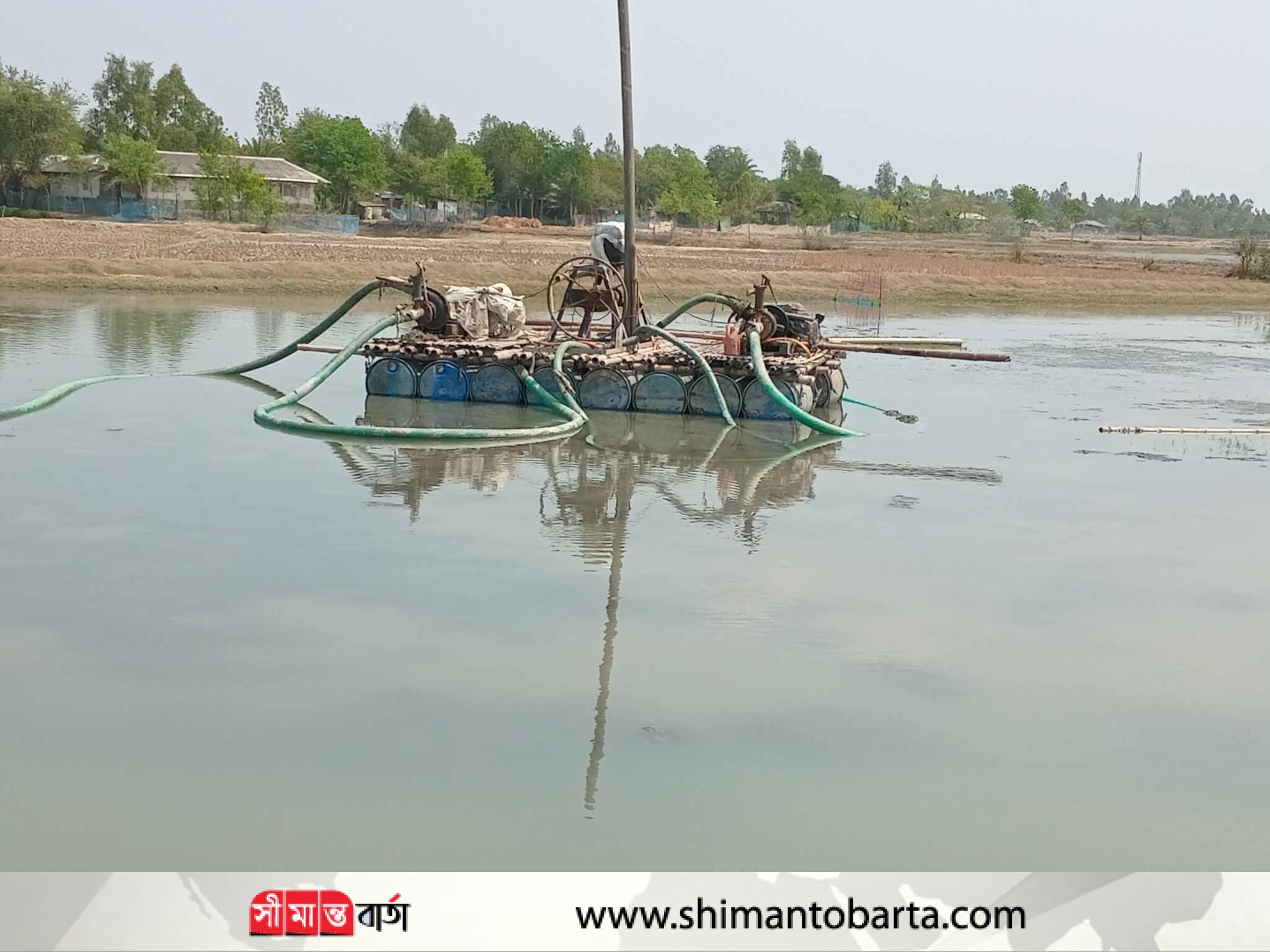 শ্যামনগরে ড্রেজার মেশিনে অবৈধভাবে বালু উত্তোলনের অভিযোগ