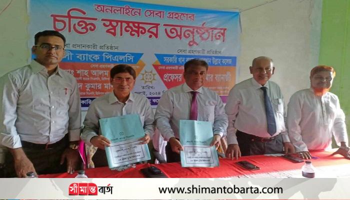 মতবিনিময় সভা শেষে শিক্ষার্থী কর্তৃক কলেজের সমস্ত ফিসাদি অনলাইনের বিভিন্ন অ্যাপস এর মাধ্যমে পরিশোধের নিমিত্তে পূর্ব প্রস্তুতকৃত স্ট্যাম্পে কলেজ ও ব্যাংকের মধ্যে চুক্তি স্বাক্ষর পরবর্তী ফাইল হস্তান্তর করা হয়।