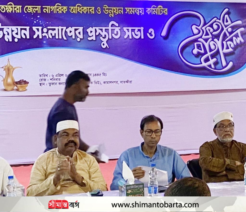 নিজস্ব প্রতিনিধি: সাতক্ষীরা জেলা নাগরিক অধিকার ও উন্নয়ন সমস্বয় কমিটির উন্নয়ন সংলাপের প্রস্তুতি সভা ও ইফতার মাহফিল অনুষ্ঠিত হয়েছে। জেলা নাগরিক অধিকার উন্নয়ন ও সমন্বয় কমিটির আয়োজনে গতকাল বিকালে শহরের লেকভিউ কনভেনশন সেন্টারে দৈনিক দৃষ্টিপাত সম্পাদক ও সংগঠনের সভাপতি জিএম নূর ইসলামের সভাপতিত্বে প্রধান অতিথি হিসাবে বক্তব্য রাখেন, জেলা পরিষদের চেয়ারম্যান ও জেলা আ’লীগের সাধারন সম্পাদক আলহাজ্ব মোহাম্মদ নজরুল ইসলাম। সম্মানিত অতিথি হিসাবে বক্তব্য রাখেন জেলা জাতীয় পার্টির সভাপতি ও সংগঠনের সাবেক সভাপতি শেখ আজহার হোসেন, জেলা দুর্নীতি প্রতিরোধকমিটির সভাপতি ও সংগঠনের সিনিয়র সহ সভাপতি আলহাজ্ব ডা: আবুল কালাম বাবলা, ঢাকাস্থ সাতক্ষীরা জেলা সমিতির সহ-সভাপতি মো: আমজাদ হোসেন, সাধারণ সম্পাদক ইকবাল মাসুদ, অন্যান্যদের মধ্যে বক্তব্য রাখেন সংগঠনের সাবেক সভাপতি কবি কামরুল ইসলাম ফারুক, ভোমরা সিএন্ডএফ এসোসিয়েশনের ভারপ্রাপ্ত সভাপতি শেখ এজাজ আহমেদ স্বপন, জাতীয় পুরস্কা প্রাপ্ত ও সাবেক ফিফা রেফারী তৈয়েব হাসান বাবু। এসময় উপস্থিত ছিলেন সংগঠনের সহসভাপতি অধ্যাপক মোজাম্মেল হোসেন, ফারহা দিবা খান সাথী, মো: আশরাফুল করিম, এসএম আবুল কালাম আজাদ, মোহাম্মদ আলী সুজন, মঈন উর রশিদ, রফিকুল ইসলাম, মিজানুর রহমান, মো: কামরুজ্জামান রাসেল, আবু জাফর সিদ্দিকী, মো: মোস্তাফিজুর রহমান, মো: ইসমাইল হোসেন, শরিফুজ্জামান, রেজাউল করিম, আকবরহোসেন, আমিরুল ইসলাম, জিএম সালাহউদ্দীন, অধ্যাপক নূর মোহাম্মদ পাড়, এসএম মহিদার রহমান, মো: হাফিজুর রহমান, মুছা করিম, সৈয়দ রেজওয়ান আলী,মীর তাজুলইসলাম রিপন। দোয়া পরিচালনা করেন সংগঠনের সহসভাপতি মো: আব্দুর রব ওয়ার্ছি। সমগ্র অনুষ্ঠানটি সঞ্চালনা করেন সংগঠনের সাধারণ সম্পাদক ও উপজেলা চেয়ারম্যান প্রার্থী মো:মশিউর রহমান বাবু।